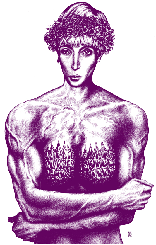 Black ink drawn onto white paper, digital color. 20 x 16 inches